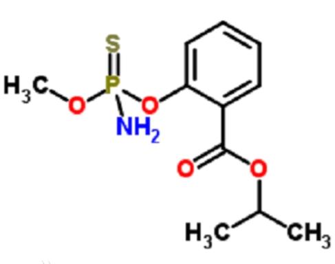 水胺硫磷(Isocarbophos)是一種有機(jī)磷殺蟲劑,分子式為C11H16NO4PS。水胺硫磷純品為無(wú)色鱗片狀結(jié)晶,能溶于乙醚、苯、丙酮和乙酸乙酯,不溶于水,難溶于石油醚,工業(yè)品為茶褐色粘稠的油狀液,放置過(guò)程中不斷析出結(jié)晶,有效成份含量85-90%, 常溫下貯存穩(wěn)定。