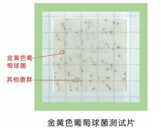 培養(yǎng)后,測(cè)試片上紫紅色的菌落為金黃色葡萄球菌;呈藍(lán)色的菌落為其他大腸菌群。出現(xiàn)陽性菌落的樣本,最好用其他更為可靠的方法進(jìn)行驗(yàn)證,沒有條件的至少要再取樣重復(fù)檢驗(yàn)一次。